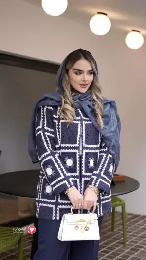 مانتو قلاب بافی سرمه ای طرح شیلان ماهوت Women's Crochet Suit Shilan Mahoot Design - Navy Blue